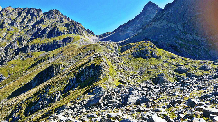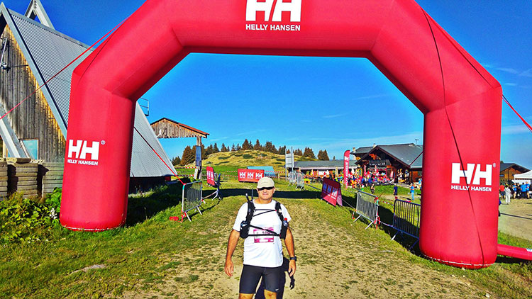 זינקנו ב 10 בבוקר ,כרגיל הזינוק לי הוא יחסית איטי, המסלול היה דומה מאוד למה שאנחנו מכירים והיה בסדר גודל של פעמים העליה לחרמון, לא נורא אבל החום התחיל לדפוק בראש. מטפס ופתאום שומע את שרון, ליאת ותמר, מקבוצת הריצה שלי, צועקים מלמעלה. הם תפסו מעלית סקי וטיפסו לרכס שהגעתי אליו. איזה כיף היה לי לראות. איך שנגמרה העליה, נכנסנו לסינגל שאותו הרגע היה המסלול כולו. הסינגל היה ברמת קושי שאני לא הכרתי, אין כאלה בארץ, עליות על רכסים שמסביבך תהומות, אבנים גדולות, ירידות לא הגיוניות משהו מטורף. העליה הקטלנית היתה של 800 מטר, שבהתחלה אתה אומר, נו כמו מנרה, אבל לא קרוב, היו שם קטעים טכנים שמבחינתי האטו אותי מאוד דבר שגרם לי לבזבוז זמן וכניסה לבעיית מים ואוכל חמורה מאוד.